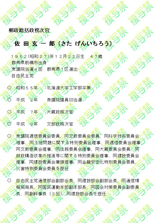 ここでは、佐田郵政総括政務次官の略歴について紹介しています。